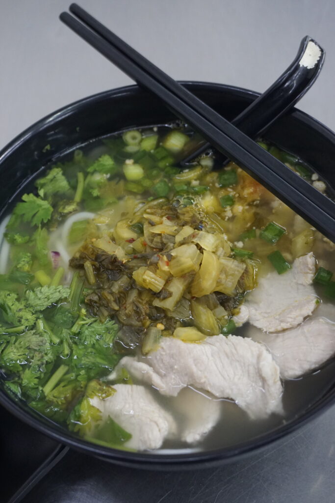 The moment your bowl arrives, you’ll notice how different it feels from your usual noodles. The Yunnan rice noodles are soft, silky, and carry that unmistakably handmade texture. Each spoonful of broth warms you from the inside, balancing the rich flavours with a light, refreshing finish.