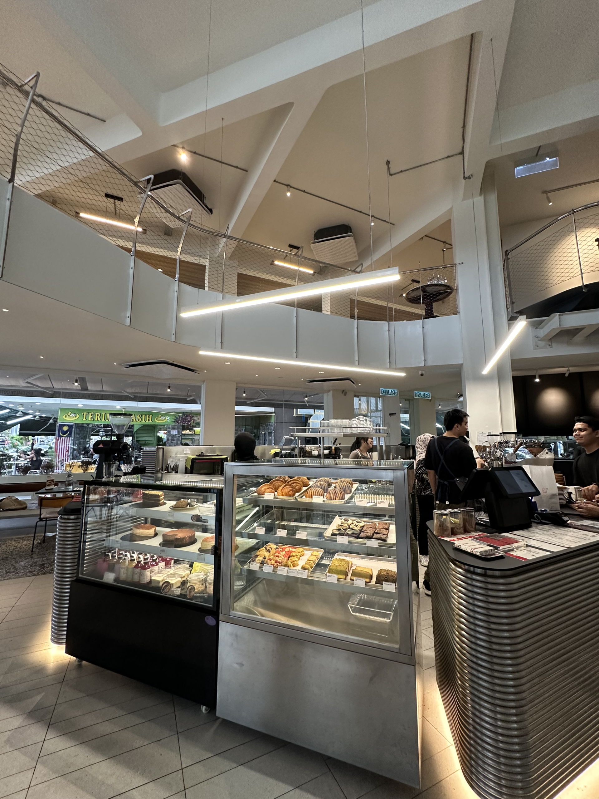 Surrounded by large glass walls, the café allows customers to view the entire cooking and brewing process from start to finish. From the kitchen to the coffee bar, every detail is visible, creating a strong sense of transparency and connection between the chefs, baristas, and diners. Being able to watch the preparation in real time adds interest to the experience and highlights the care and craftsmanship behind each dish and drink.